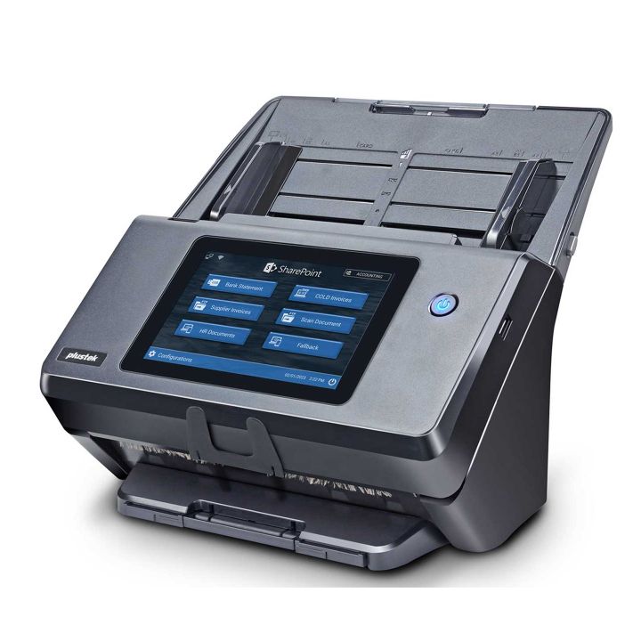 Plustek eScan A450 Pro là máy scan mạng hai mặt tốc độ cao, thiết kế độc lập với khả năng xử lý tài liệu lên đến 60 trang/phút – 120 ảnh/phút, cùng khay nạp tài liệu tự động (ADF) 100 tờ. Thiết bị tích hợp màn hình cảm ứng 7 inch, hỗ trợ quét trực tiếp vào USB, FTP, email, SharePoint, OneDrive, Outlook, Exchange, Azure… giúp tối ưu hóa quy trình số hóa mà không cần máy tính trung gian.